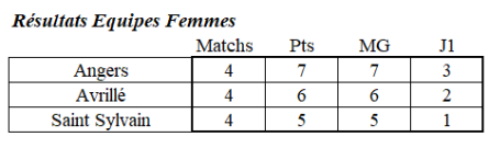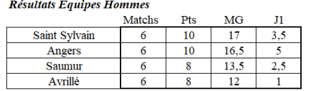 Chez les hommes, bravo à St Sylvain, qui coiffe l’équipe d’Angers d’1/2 match gagné.