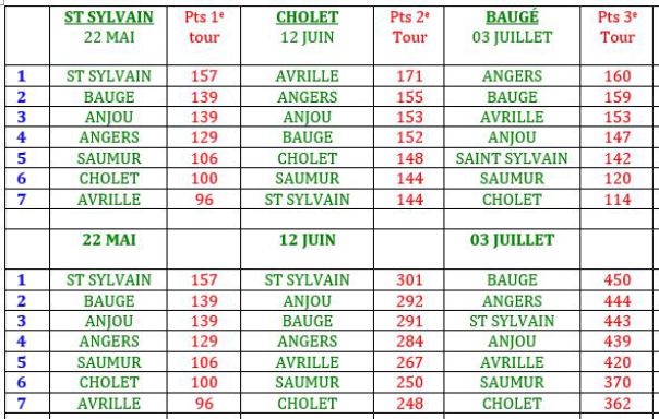 La 3eme manche du Critérium Départemental s’est déroulée sur le golf de Baugé le samedi 03 Juillet.Le parcours était superbe au contraire du ciel ,resté bien gris mais heureusement sans trop de pluie. Conditions de jeu globalement bonnes.A noter les bons résultats en Brut de Steve RUIZ de Cholet (25/35) et de Nabil DRIDI d’Avrillé (25/34).En Net, c’est Dominique VIALATOU d’Angers qui rafle le Green fee avec un 40 pts (22 en Brut ) et l’exploit revient à Nathalie MENARD SIROT avec un trou en UN sur le Par 3 n° 17 et un 39 en Net.A l’issue de cette manche, la tête du classement provisoire des équipes revient à Baugé, suivi d’’Angers,St Sylvain et Anjou. Ces 4 équipes se tiennent en 10 points et lancent une fin de saison palpitante ! Avrillé n’a pas dit son dernier mot puisque nous devrons nous retrouver sur ce terrain le samedi 28 Aout pour la 4eme manche.
