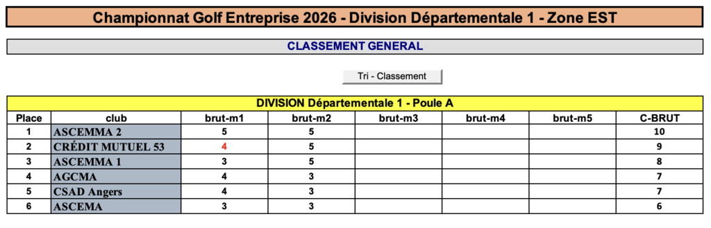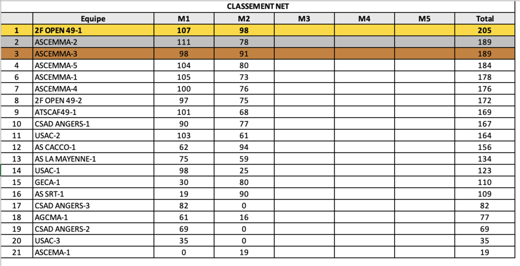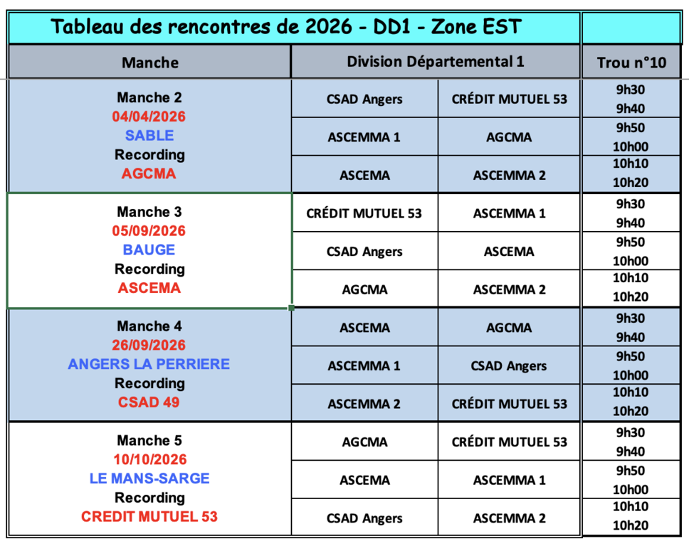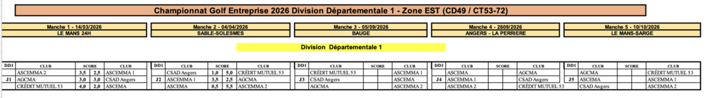 Voici les résultats et classement de la DD1 après la 2ème journée du championnat