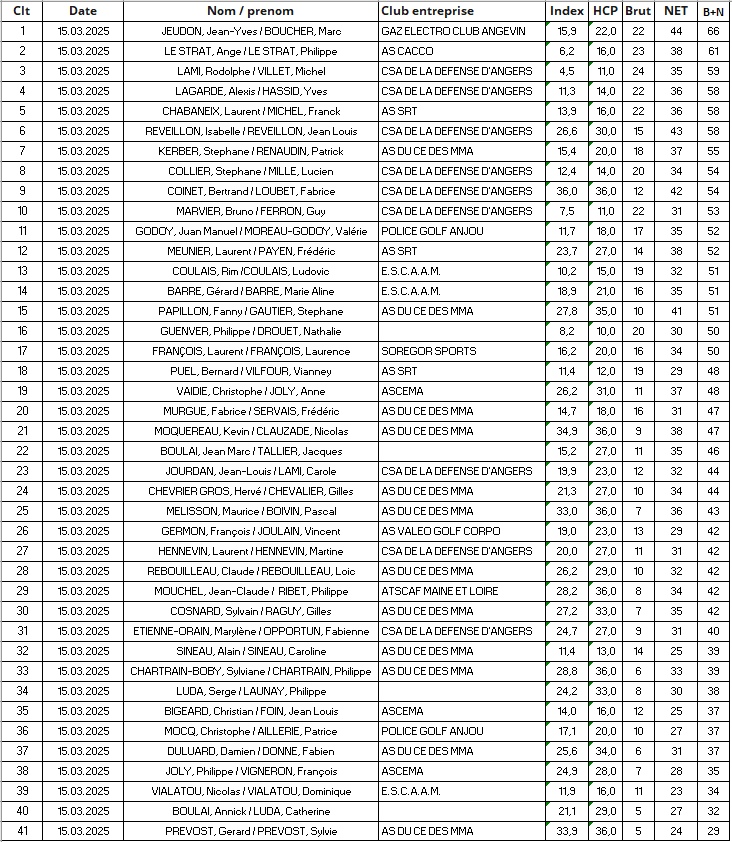 Nous étions 41 équipes (82 joueurs) réunies samedi dernier (22/03)
